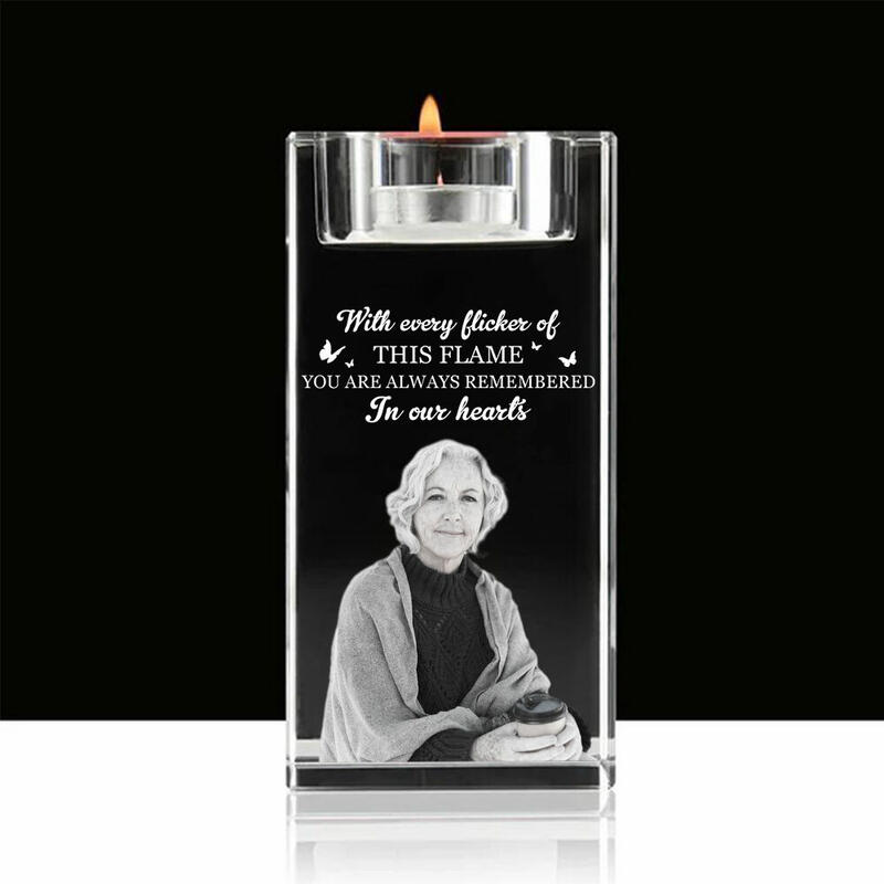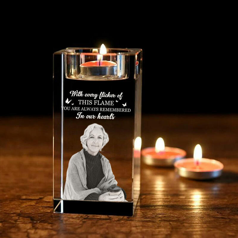 Custom Crystal Candle Holder Upload Photo Memorial Gift for Christmas