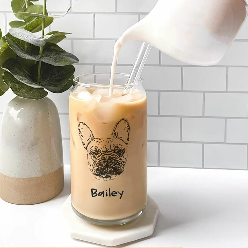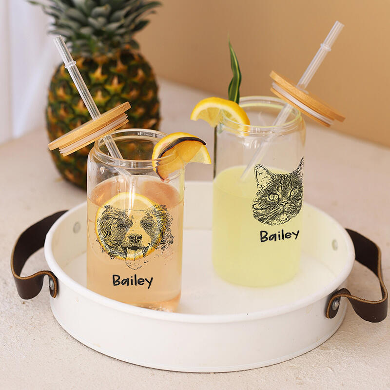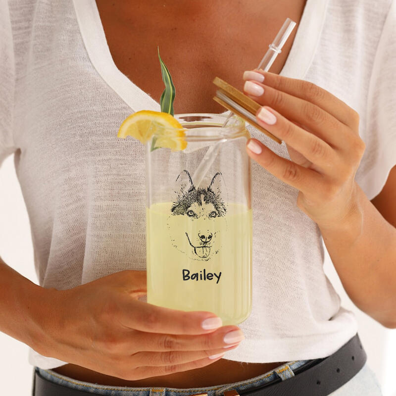 We bring you a personalized glass. This glass is made of high-quality glass, ensuring clear transparency and excellent quality. It comes with a lid and straw and has a 16-ounce capacity, which is big enough to hold your favorite beverage, whether it's coffee, tea, juice, or smoothies.